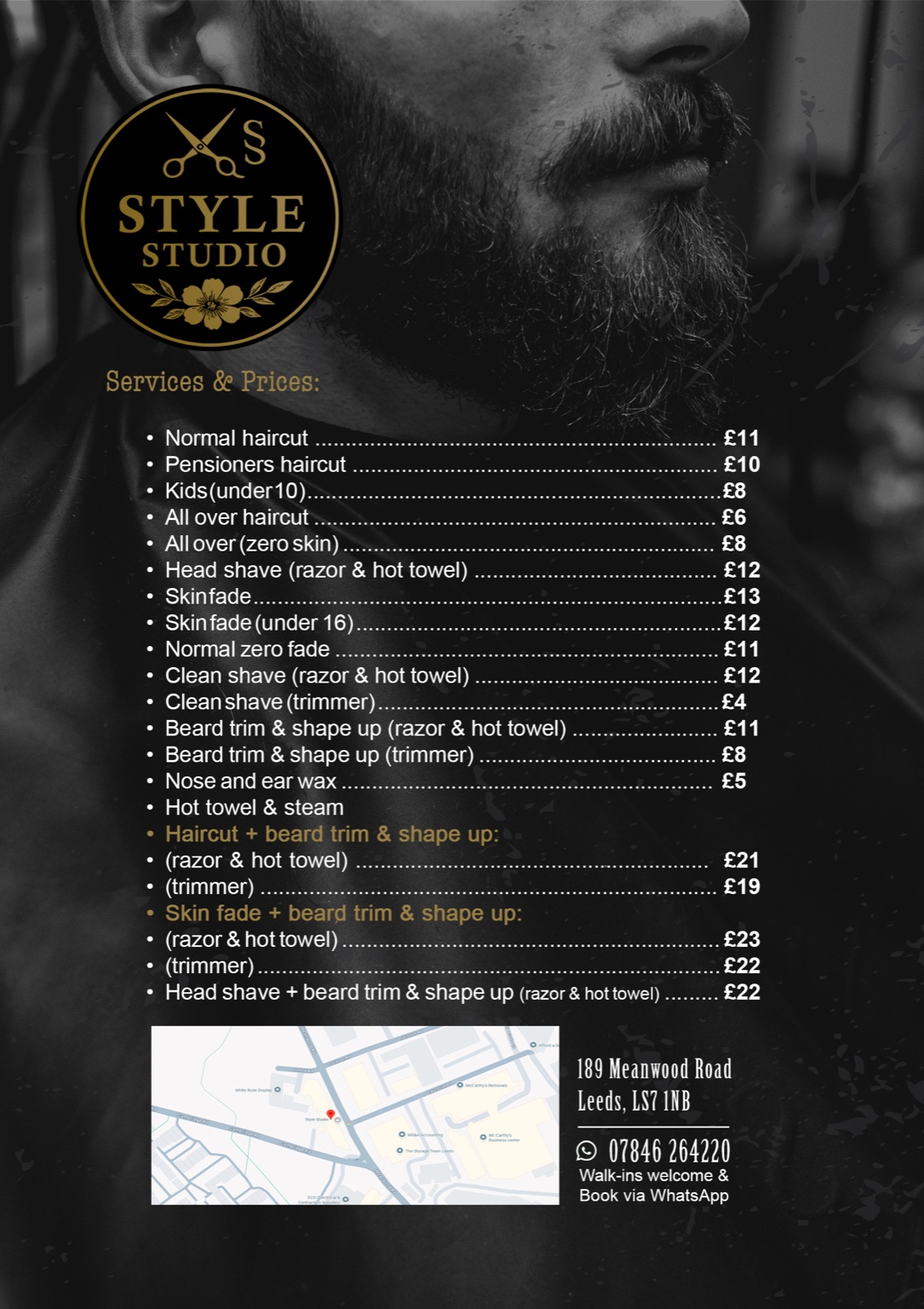 At Style Studio Leeds we blend modern techniques with a classic touch. Whether you want a fresh fade, beard shape-up or a full restyle, our experienced team has you covered.